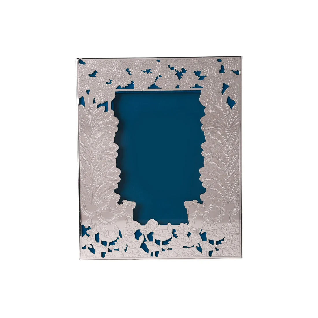 A symbol of divinity and grace, the Silver Cow Photo Frame in sky blue is a beautiful blend of tradition and elegance. Crafted with intricate detailing and a fine silver finish, this frame is perfect for displaying religious images or family portraits. The calming sky-blue hue adds serenity to your space, making it an ideal addition to your home decor. Its sturdy construction ensures durability while enhancing the spiritual ambiance of your surroundings. Perfect for festive gifting or personal use, this frame is a cherished keepsake.